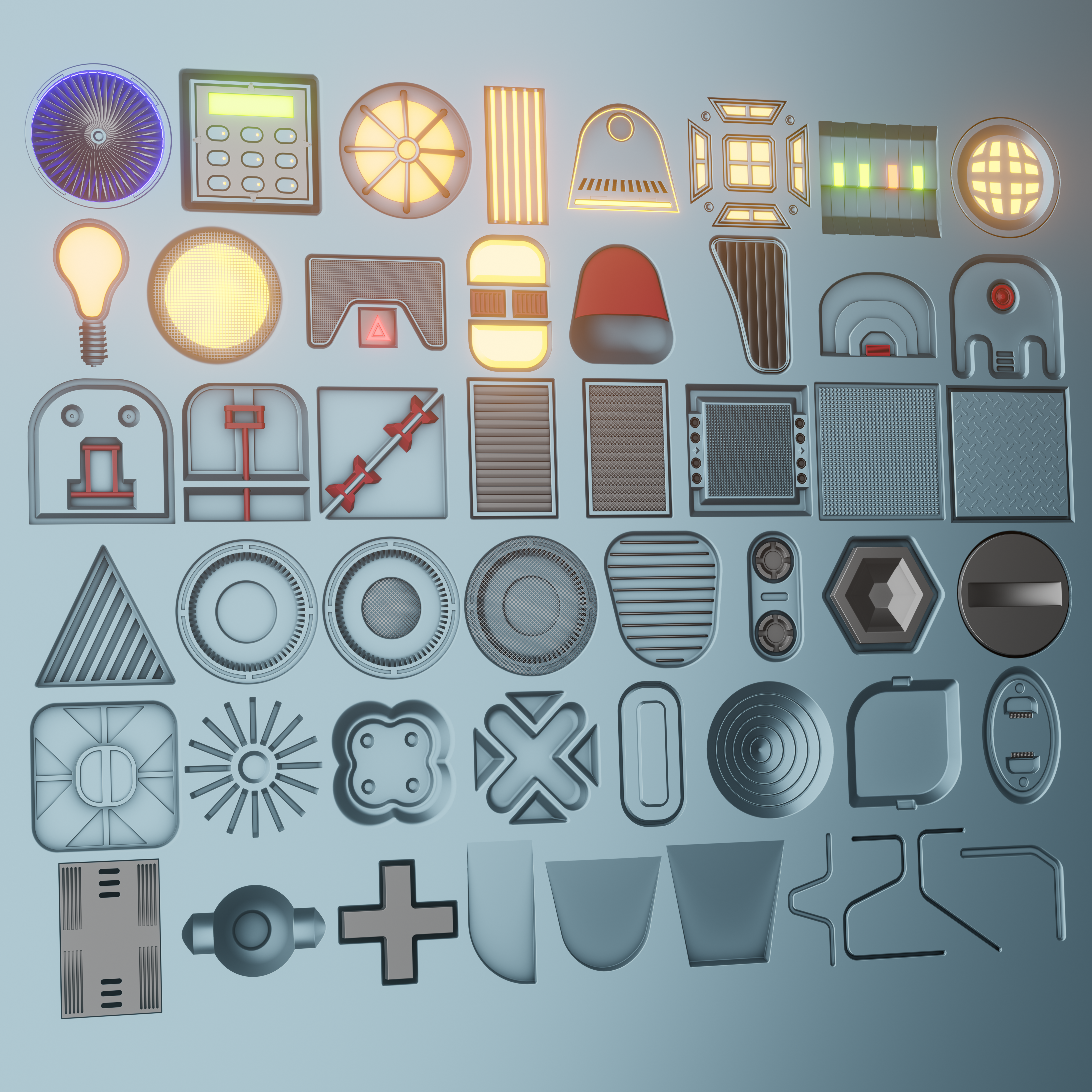 50 Semi sci-fi hard surface decals pack. Decal Machine 2.5 Ready.